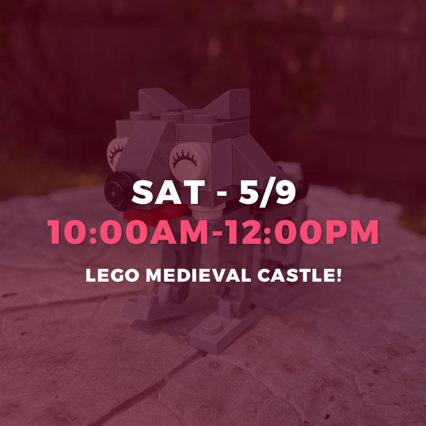 Session participants will create 2 Lego builds that pertain to the theme (instructions and bricks provided). Additional creations can be added to the castle setting via creative free-building.